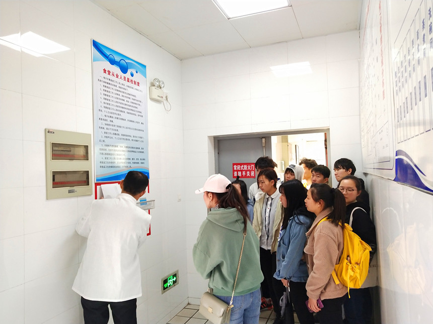 3月15日中午,后勤服务中心组织学生代表走进食堂后场,参观饭菜操作流程,了解食品卫生安全管理。食堂各班长就食堂的管理模式、原材料采购要求和食堂7S管理流程等向同学们进行了简单的介绍,在同学们观察食堂后场各个操作区域过程中,食堂班长还重点介绍了食品原材料索证、食品加工、餐具消毒卫生方面内容。
