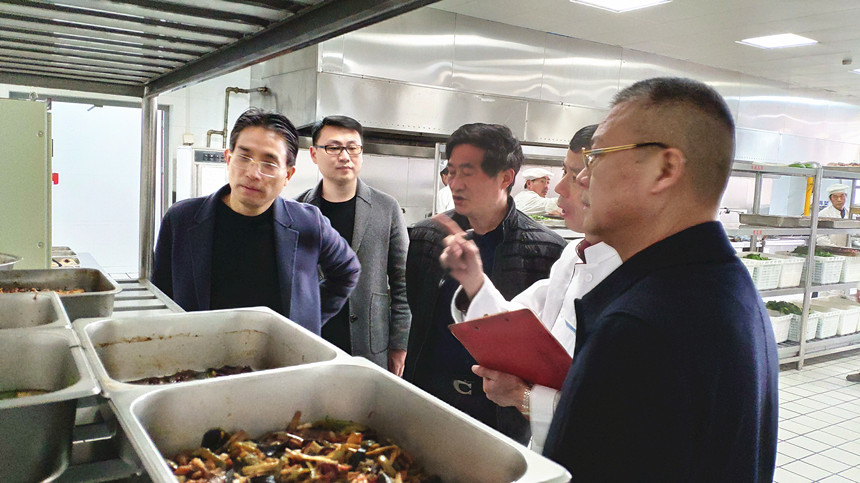 3月14日,纪委书记王春林、党委委员黄中浩实地检查了各食堂后场、米饭生产线,从仓库、粗加工区、烹调间、备餐间、售卖大厅到食品留样间等每一个地方,从进货渠道、洗菜、切菜、烹调熟制到销售、回收的每一个环节上,都进行了仔细的检查和询问。通过察看,对各食堂严格执行7S管理,用餐环境整洁、饭菜供应卫生表示满意,同时也指出要规范各服务点台帐资料、注意细节管理等意见。