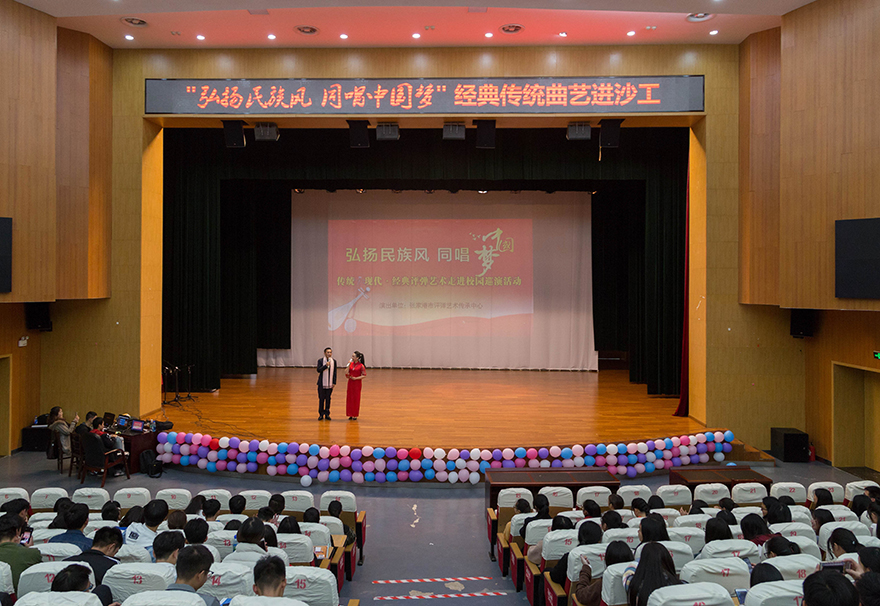 11月14日晚,由张家港市评弹艺术传承中心演出的“弘扬民族风,同唱中国梦”高雅艺术苏州评弹进校园活动第三场在我院举行。张家港市评弹艺术传承中心演员带来了一场传统曲艺的饕餮盛宴。500多名师生观摩了演出,在幽默诙谐的氛围里体验苏州评弹艺术魅力,感受传统曲艺精髓。