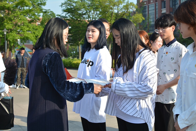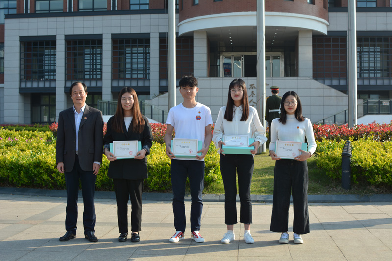 系党支部书记郭敏,系副主任、党支部组织委员陶融为2018年度系16名优秀志愿者获奖者颁奖;系主任王汉荣为系团总支优秀组织奖同学颁奖。2018年度经济管理系团总支志愿者品牌活动,得到市委市政府表彰,荣获市十大优秀志愿者团队。院团委代表向经济管理系团总支授予先进团支部流动红旗。建工系团总支代表参加本次校训旗帜接旗仪式,从经管系团总支手中接过学院校训旗帜。“勤奋、求实、开拓、进取”,校训旗帜飘扬在梦想广场碧海蓝天。(郭敏 文/经管系新媒体 摄)