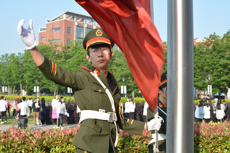 在庄严的升旗仪式下,系团总支书记邬海燕老师作“青春心向党 建功新时代”——国旗下的公开课主题团日微课,激励和引领我系18级团员青年矢志投身新时代,做担当有为新青年。系党支部青年委员张海燕老师带领经管系小合唱团领唱团歌《光荣啊!中国共青团》。仲春佳日,旭日东升,红旗、党徽、团徽,在阳光下熠熠生辉。