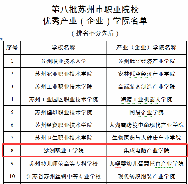 近日,苏州市教育局公布了第八批苏州市职业院校优秀产业学院名单,我校数字化与微电子学院和张家港市集成电路产业发展有限公司、张家港市集成电路产业促进中心合作共建的“集成电路产业学院”获评优秀产业学院。