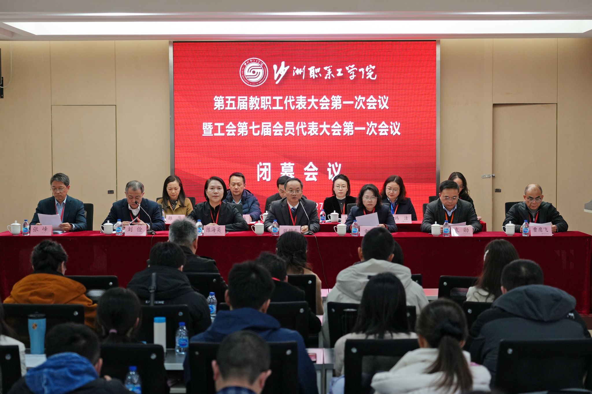 我校第五届教职工代表大会第一次会议暨工会第七届会员代表大会第一次会议于12月27日隆重召开。会议听取并审议通过了党委副书记、院长章雯作的《沙洲职业工学院2025年工作报告》,以及徐美珠同志作的《沙洲职业工学院工会第六届委员会工作报告》,审议通过了《沙洲职业工学院“十五五”发展规划(草案)》,选举产生了学校工会第七届委员会及经费审查委员会委员。各代表团分组讨论了《学院工作报告》《学校“十五五”发展规划(草案)》及《工会工作报告》,紧紧围绕学校发展建言献策。学校党委书记钱锦东作闭幕词。