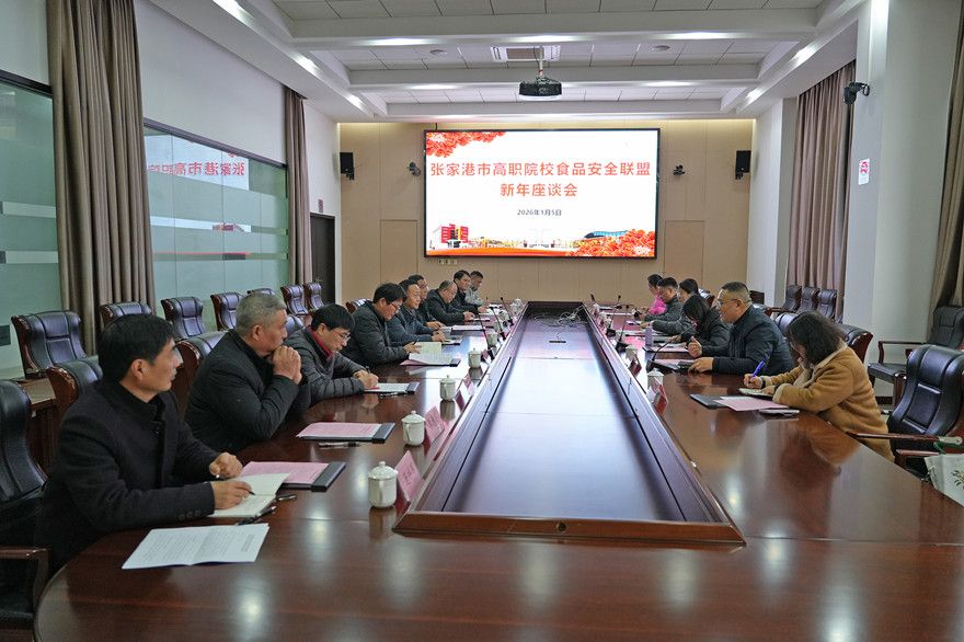 为进一步强化高职院校食品安全协同治理,交流工作经验,明晰年度方向,切实保障师生饮食健康安全,1月5日,张家港市高职院校食品安全联盟2026年新年座谈会在我校召开。张家港市市场监督管理局分管负责人、教育局、卫健委及联盟各成员单位相关部门负责人参加活动。