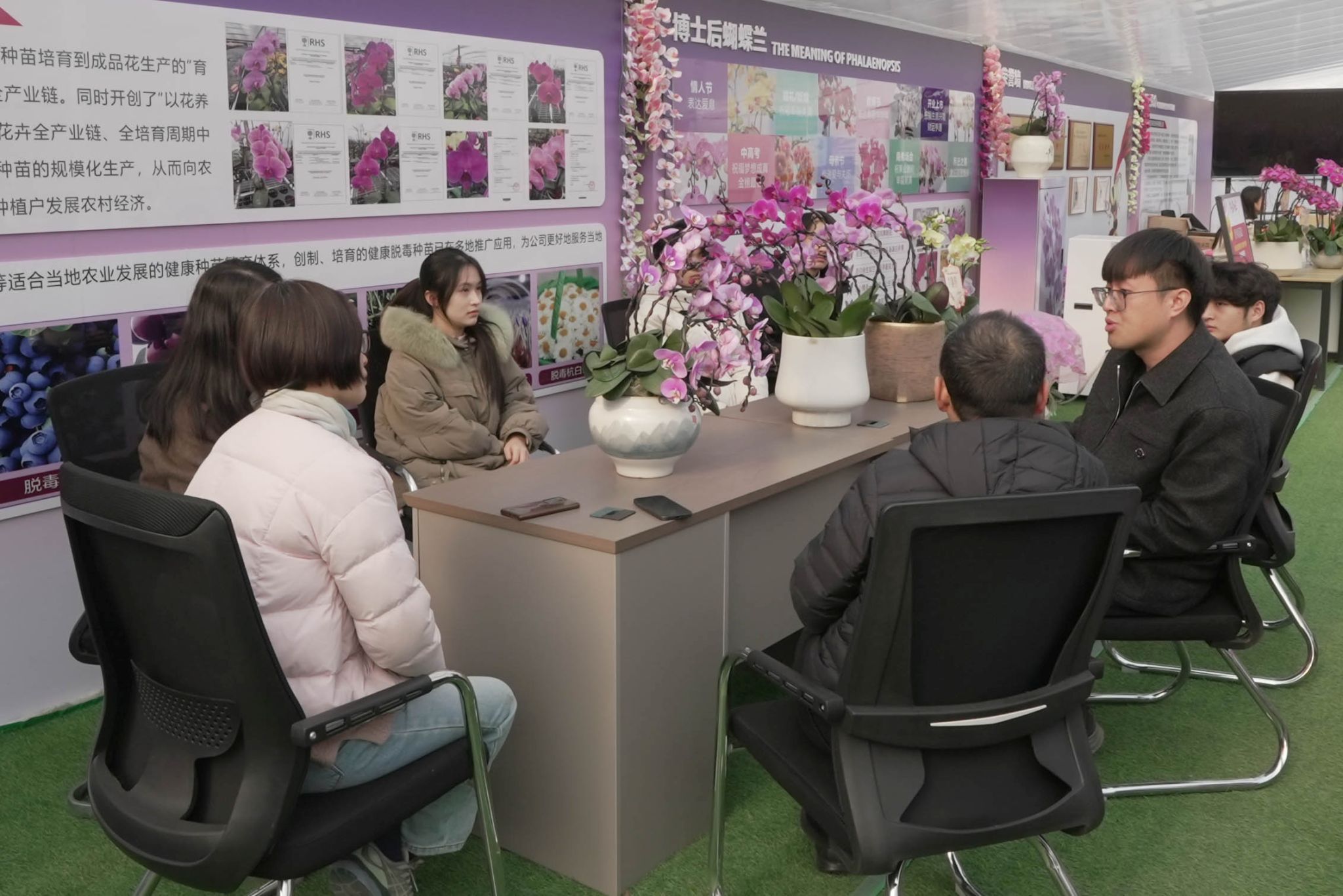1月9日,我校星火班、“海棠妙笔”思评社学生参观了“博士后蝴蝶兰基地”。该基地由浙江大学植物保护学、园艺学双博士后杨传宝创立,位于我市锦丰镇,是当地乡村振兴、科技助农典范。学生们了解了该基地的人才需求和岗位设置情况,表示愿意学习现代农业科技知识,投身乡村振兴实践活动。