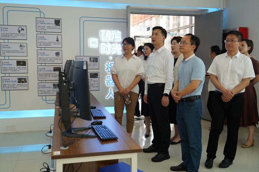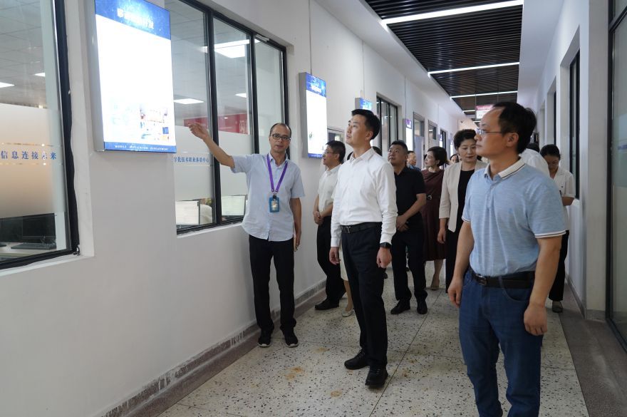 9月8日,在第39个教师节来临之际,市长蔡剑峰、市政协主席赵建明、副市长翁羽人等一行来院走访慰问。在我院党委书记钱锦东、院长章雯陪同下,蔡市长一行参观数微学院党建长廊、数字化技术职业体验中心和智能制造学院教学研讨、生产实训中心。