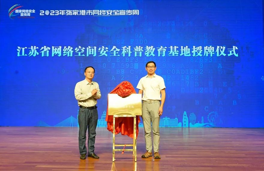 2023年网络安全宣传周的时间为9月11日至17日,主题为“网络安全为人民,网络安全靠人民”。活动期间,我院党委书记钱锦东和江苏省网络安全空间学会常务理事、东南大学网络空间安全学院教授、博士生导师韩金广为江苏省网络空间安全科普教育基地进行了揭牌,随后韩金广教授做了《中美博弈下网络安全态势分析》主旨分享。