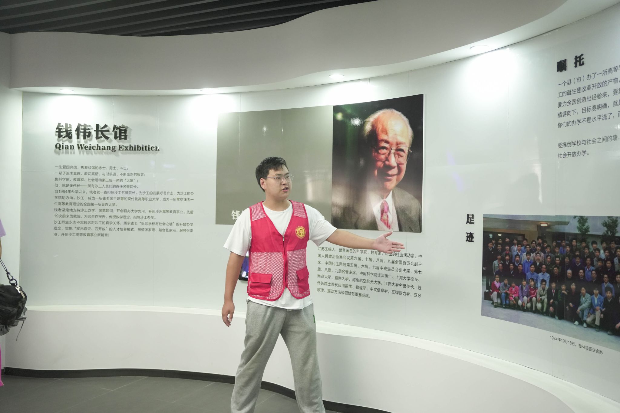 沙洲职业工学院校史馆是张家港市爱国主义教育基地,星火宣讲团的讲解员以沙洲职业工学院历史发展为线为同学们进行讲解,沙洲职业工学院创建于1984年,作为全国第一所县办大学,被载入中国高等教育史。时任中共中央总书记胡耀邦寄语“沙工有如扬子水,不尽人才滚滚来。”著名科学家、教育家钱伟长自开办之初一直担任名誉院长,时任全国人大常委会副委员长胡厥文题写校名,知名社会学家费孝通提出“勤奋、求实、开拓、进取”的校训。通过讲解,同学们了解了我校筹建、搬迁、美化等发展史,不少同学在钱伟长馆和杰出校友榜前长时间驻足,纷纷表示了要成为栋梁之材的决心,同学们深切地感受到了学校厚重的历史积淀,校史馆承载着的历史底蕴也使同学们的自豪感和使命感油然而生。
