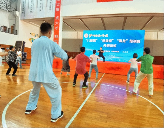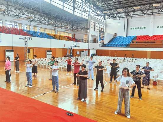为贯彻落实党的二十大精神,推动习近平新时代中国特色社会主义思想主题教育活动走深走实,深入开展“我为群众办实事”实践活动,进一步推进全民健身运动,9月13日,由马克思主义学院党支部组织、公共教育学院体育教研室及院工会共同举办的“八段锦”健身培训班在学院体育馆正式开班,将八段锦健身服务融进校园,送到教职工心中。