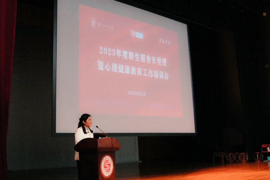 学生处副处长方珏作培训动员,希望新生宿舍长严于律己,做好“模范生”;警惕隐患,做好“安全员”;沟通协调,做好 “调解员”;团结友爱,构建“家”文化。沙工警务室警官作“近期校园安全案例解析”,通过一件件真实的案例分析,阐明安全意识的重要性。公寓科管理员就公寓管理注意事项和2023年度“文明宿舍”系列创建活动作详细介绍。心理健康教育中心周华斌主讲“做好寝室心理健康工作的‘哨兵’”,他介绍了营造和谐宿舍氛围的方法,尤其是在危机预防方面带来了专业讲解。