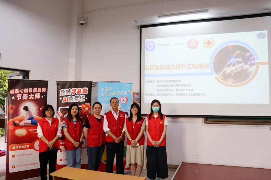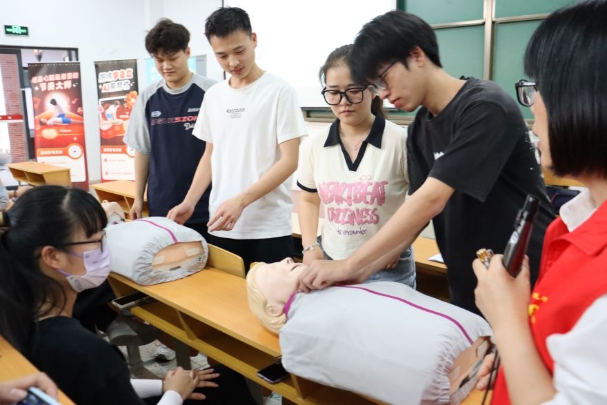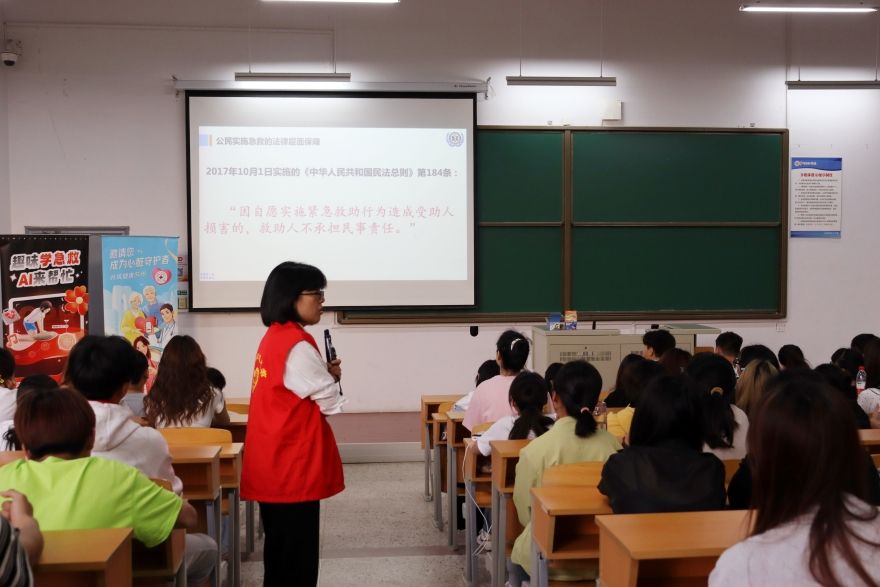 培训现场,来自张家港市120急救指挥中心的老师通过进行生动讲解,演示自动体外除颤仪(AED)的操作要领。通过本次培训,同学们掌握了基本的急救知识和技能,在突发情况下能够迅速、有效地进行应急救护。