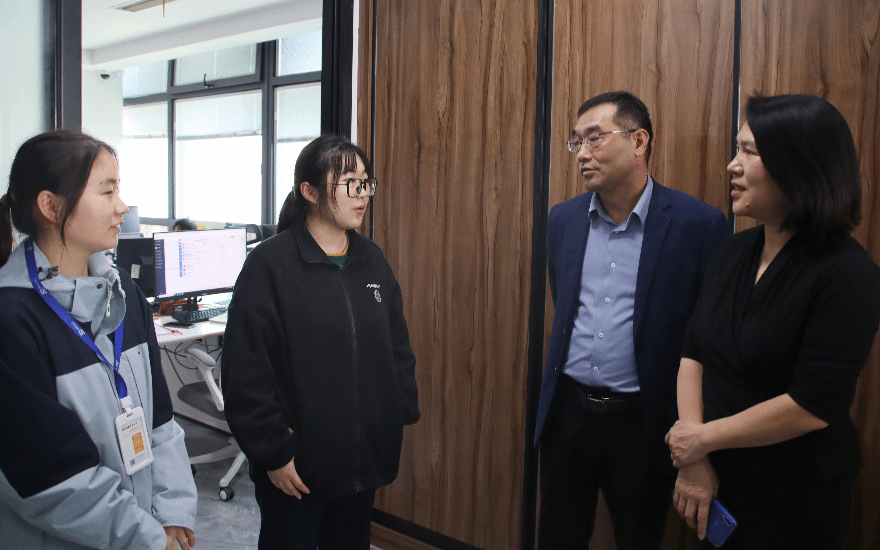 调研组一行深入企业与学生实习一线,了解学生在企业实习情况,与学生座谈,勉励学生锤炼吃苦耐劳、踏实肯干的意志品质,不断提升专业技能。同时就校企合作、学生培养、实践基地建设等与企业进行深入探讨。