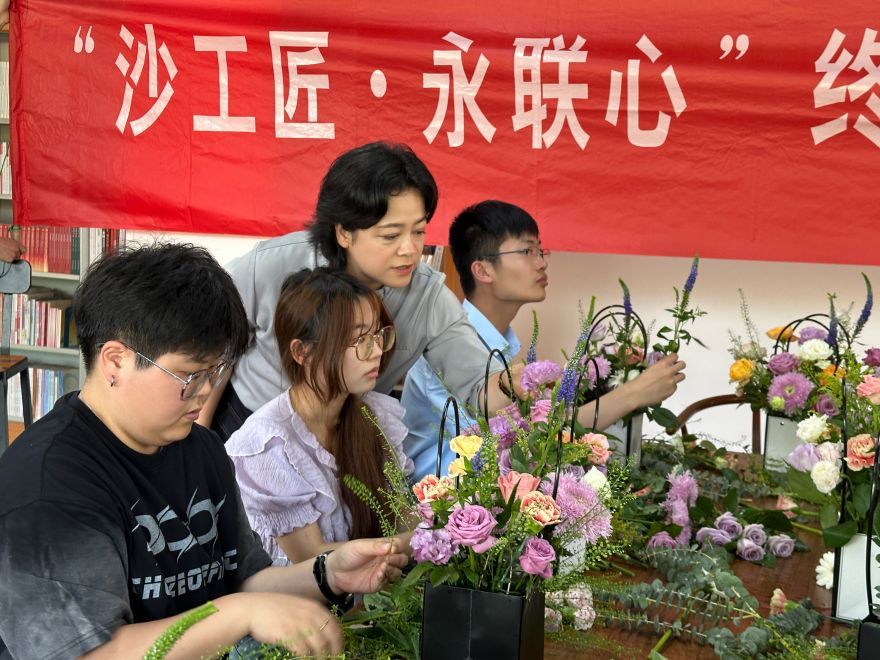 近日,我校3个学院走进永合社区,持续推进“沙工匠·永联心”终身科普教育项目。建筑工程与设计学院教师向社区居民讲解了中国传统插花的盘花插制技巧并示范教学,社区居民们在教师指导下完成了自己的个性插花作品;纺织服装与材料学院学生走进永合社区开展非遗扎染活动,志愿者向社区老人们科普扎染历史及技艺,带领社区老人们进行扎染手工体验;智能制造学院面向青少年开展科普教育活动,让孩子们学习航天知识、感受大国崛起、树立民族自信。