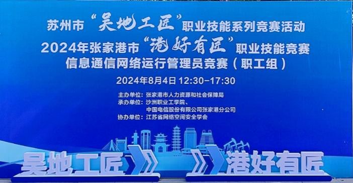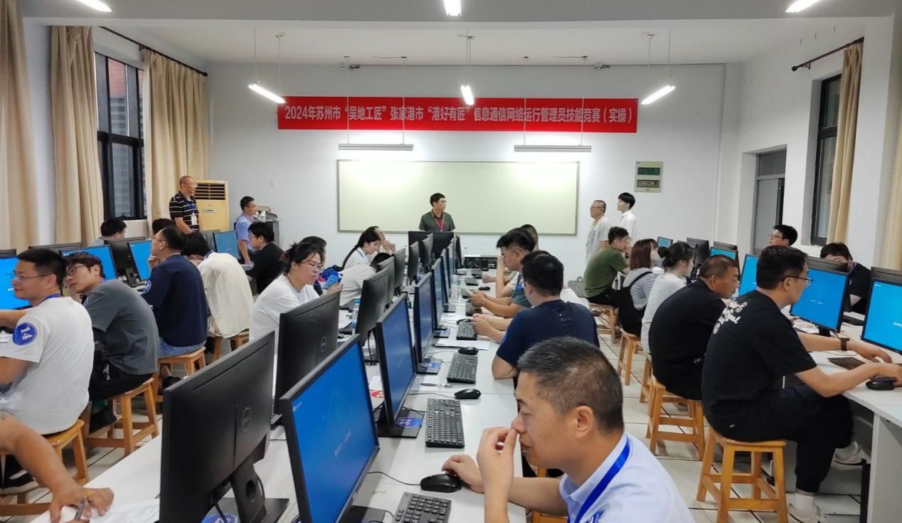 2024年8月4日,苏州市“吴地工匠”、张家港市“港好有匠”职业技能系列竞赛——信息通信网络运行管理员大赛在我校信息楼顺利举行,来自全市企事业单位的64名优秀技术人员参赛。