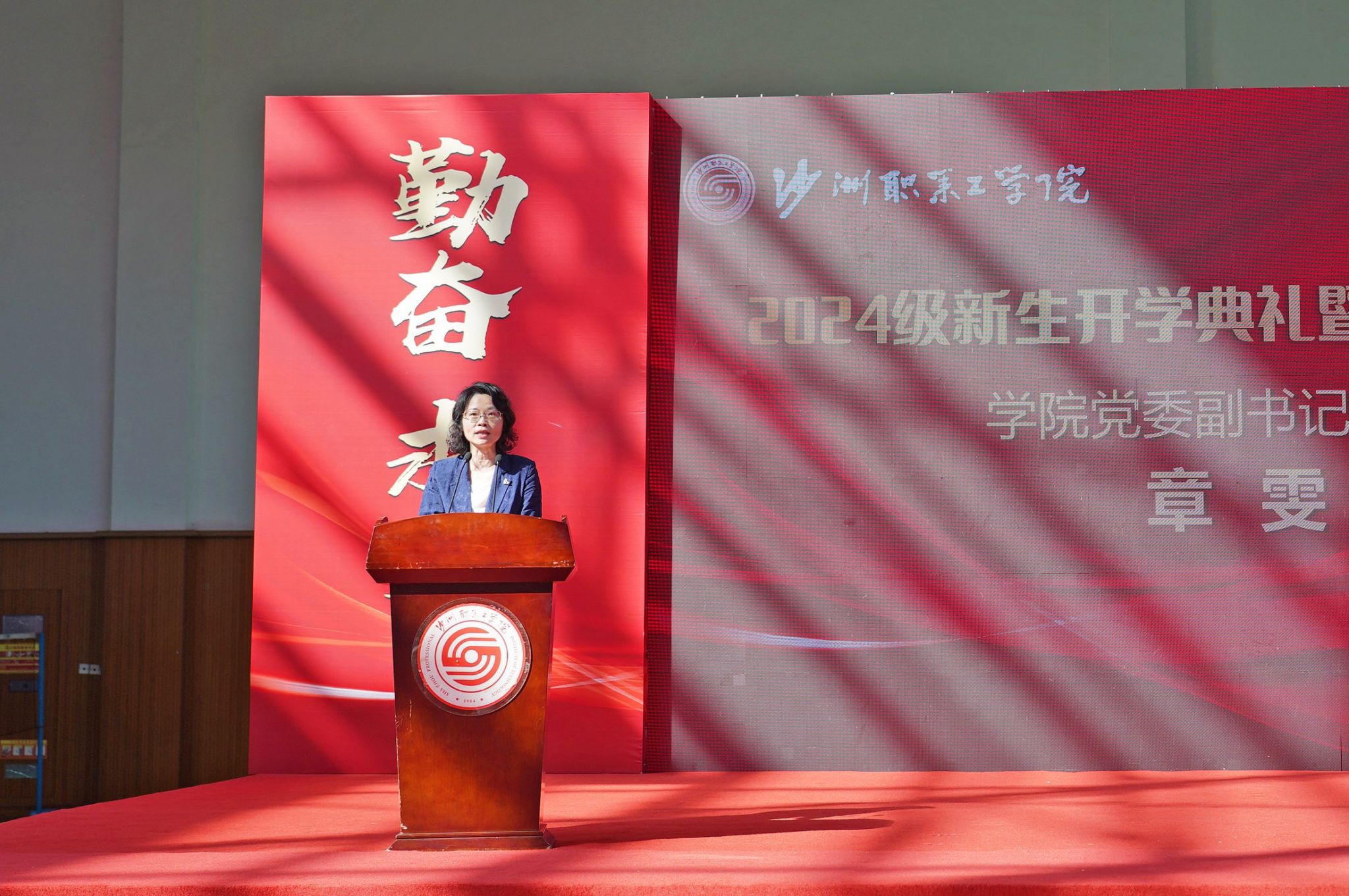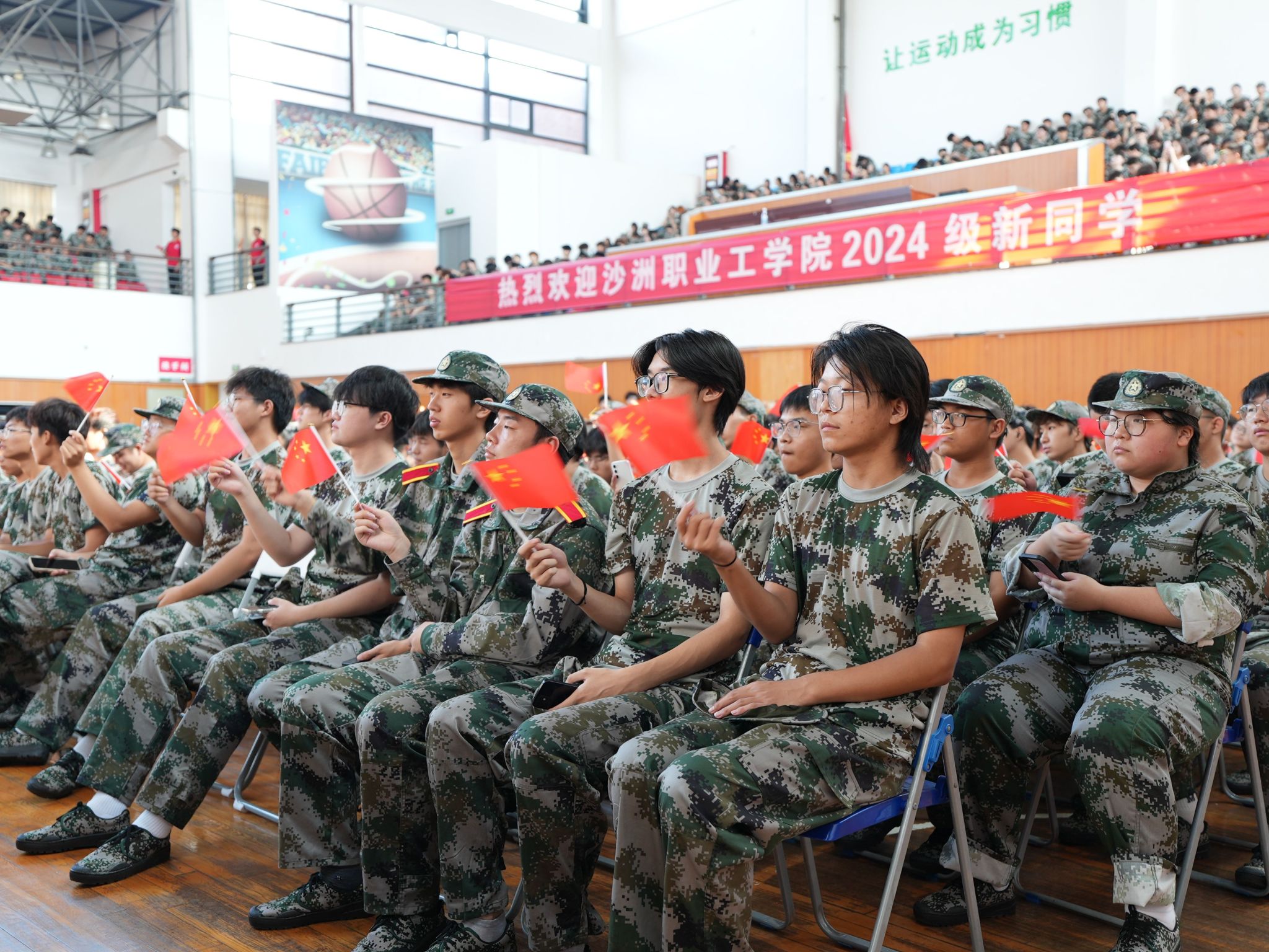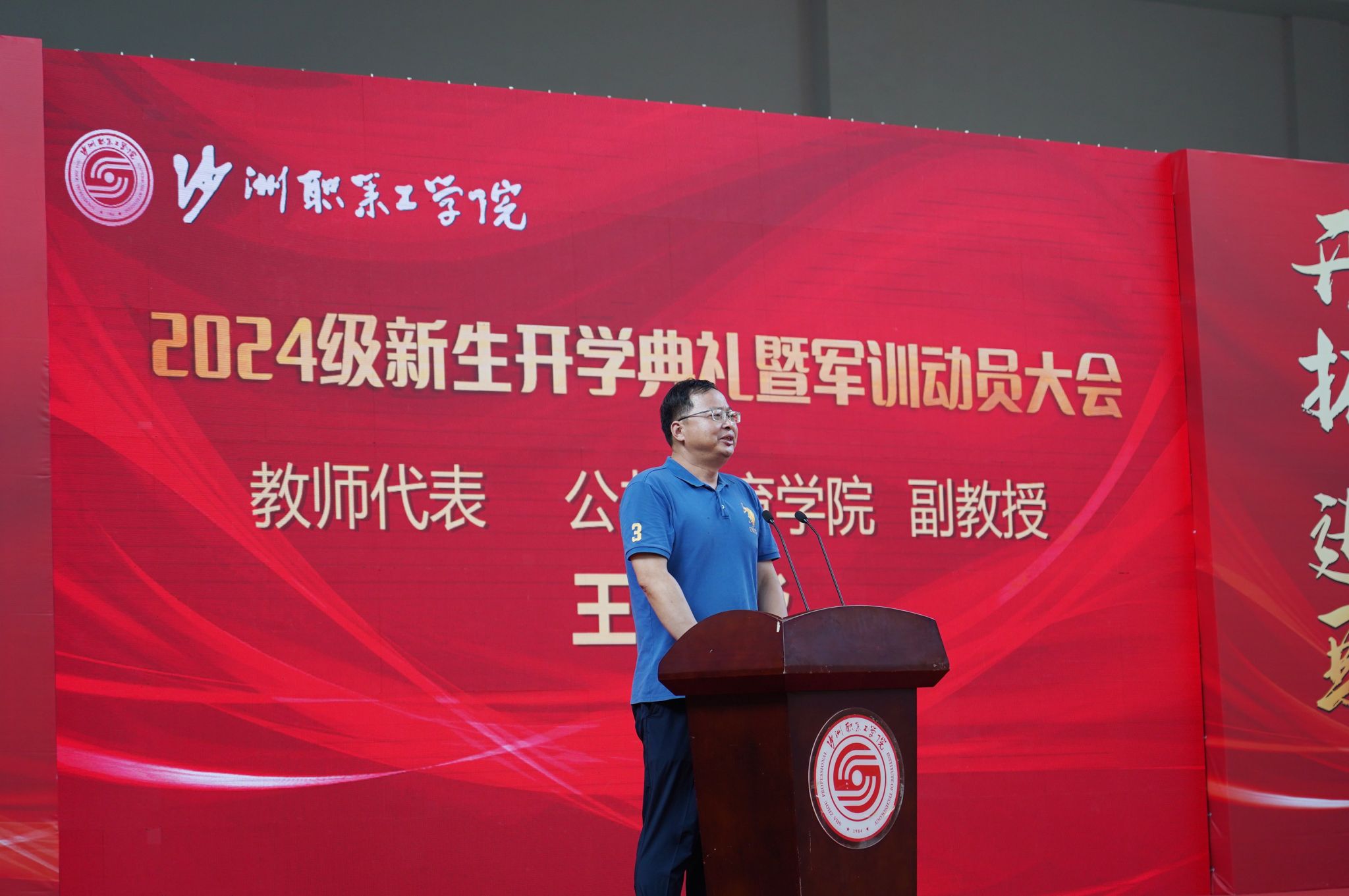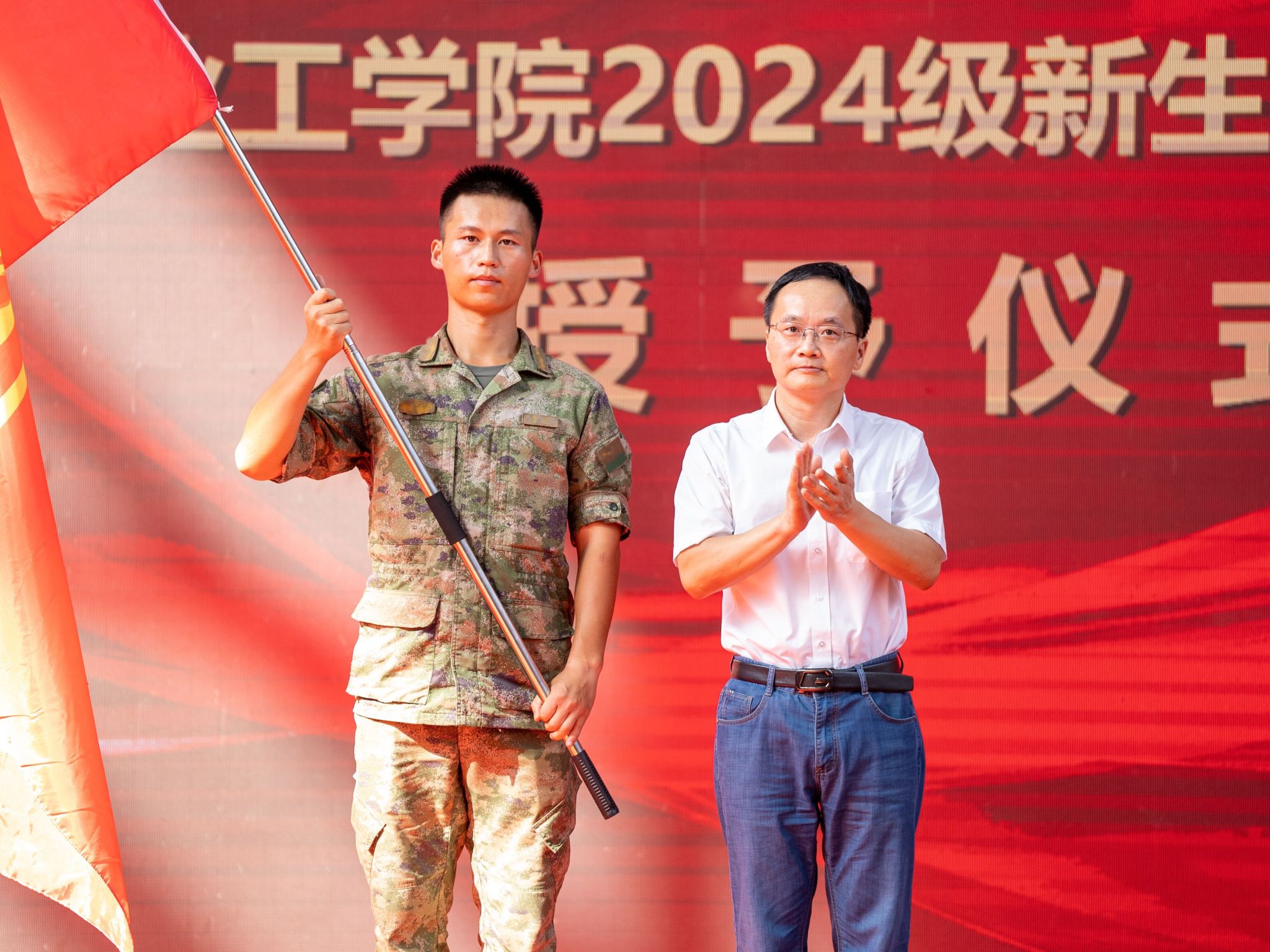 9月14日下午,我校2024级新生开学典礼暨军训动员大会在体育馆举行。校领导、各二级学院及行政部门负责人、承训部队官兵、新生班主任、辅导员及全体新生参会。党委委员、副院长陈海英主持大会。
