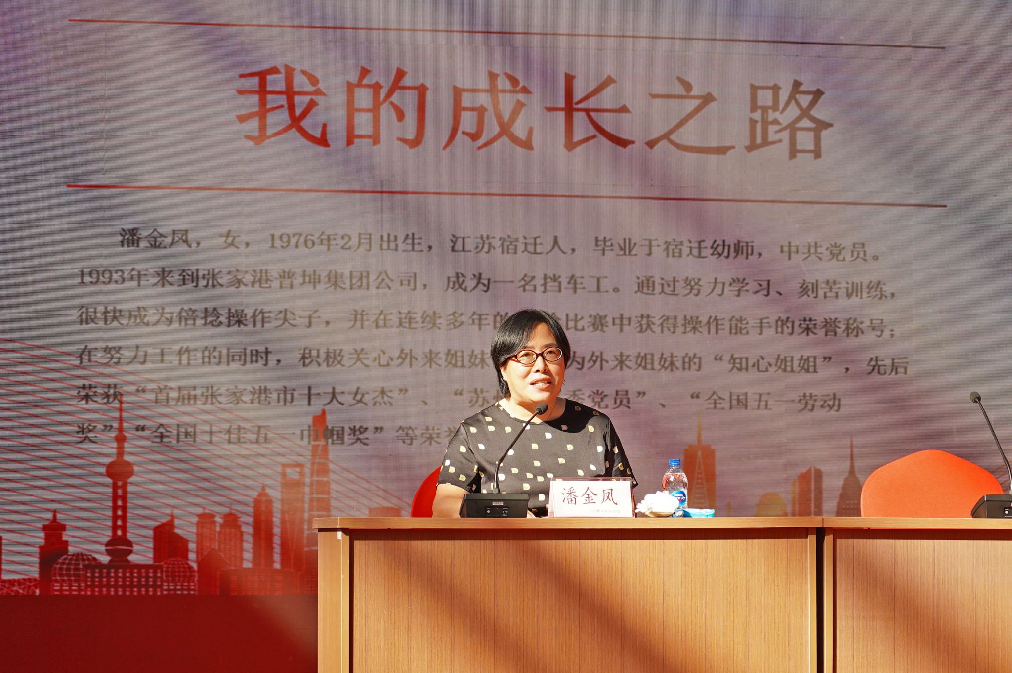 全国“五一”劳动奖、全国“五一”巾帼奖获得者潘金凤作《为梦想而战》“开学第一课”报告。诠释了她对劳模精神、劳动精神、工匠精神的理解与践行,告诉大家在平凡的岗位同样可以做出不平凡的业绩,报告语言质朴,事迹感人,充分展现了最美劳动者的风采。