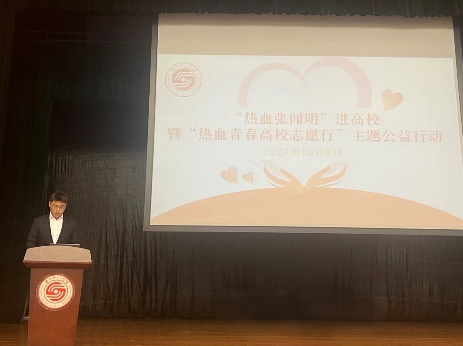 为了弘扬无私奉献精神,鼓励青年学子积极参与无偿献血,用实际行动诠释青春的责任与担当,10月8日,“热血张闻明”进高校暨“热血青春高校志愿行”主题公益行动在学校大活报告厅举行。张家港市红十字血站工作人员,我校团委老师、全体班长、团支书参与了本次活动。