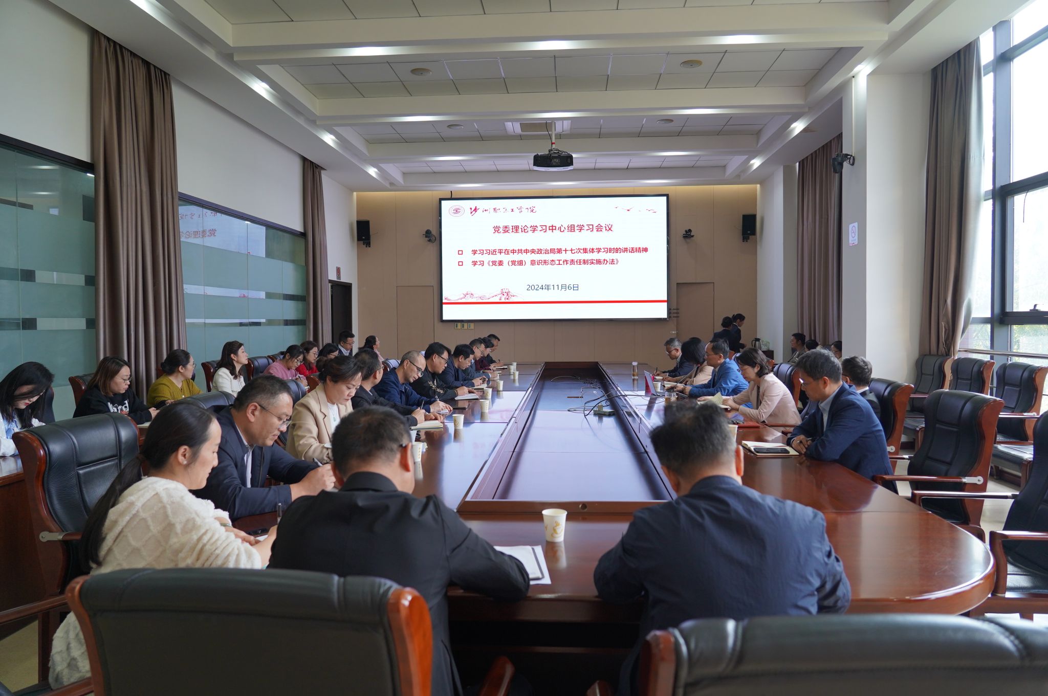 11月6日下午,学校在行政楼321会议室召开党委理论学习中心组学习会议,专题学习习近平总书记在中共中央政治局第十七次集体学习时的讲话精神、《党委(党组)意识形态工作责任制实施办法》。党委理论学习中心组全体成员参加学习会,党委书记钱锦东主持会议并领学。