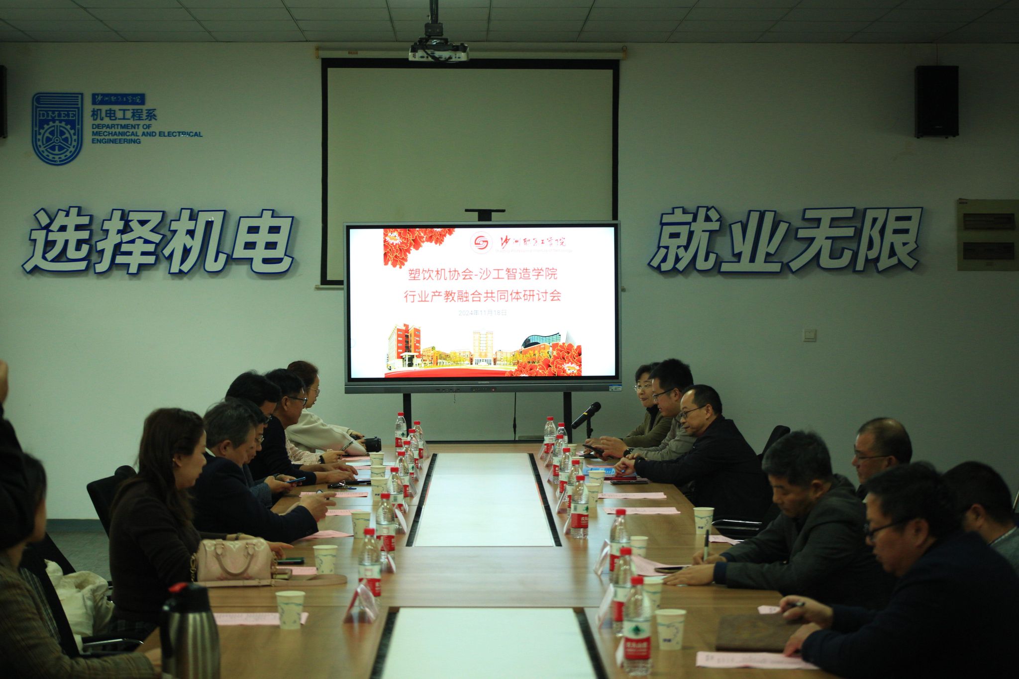 为进一步推进党建服务产教融合工作,推动塑料饮料机械行业产教融合共同体建设,11月18日下午,张家港市塑料饮料机械协会组织相关企业来校举行交流研讨会。塑饮机协会轮值会长、江苏新美星总助印刚,塑饮机协会副会长、江苏永道科技有限公司总经理韩勇,塑饮机协会秘书长封琴,塑饮机协会企业代表,我校党委委员、副院长刘俭,智能制造学院、机关党总支、对外交流合作处等职能部门人员参加会议。