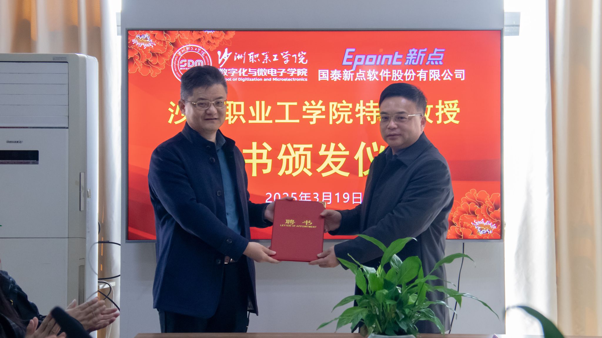 双方就校企合作、人工智能技术应用专业建设等内容进行了深入交流。袁勋对校企双方合作取得的成果表示肯定,希望双方不断进行探索和创新,取得更多高水平的产学研成果,并代表学校向李强颁发了特聘教授证书。