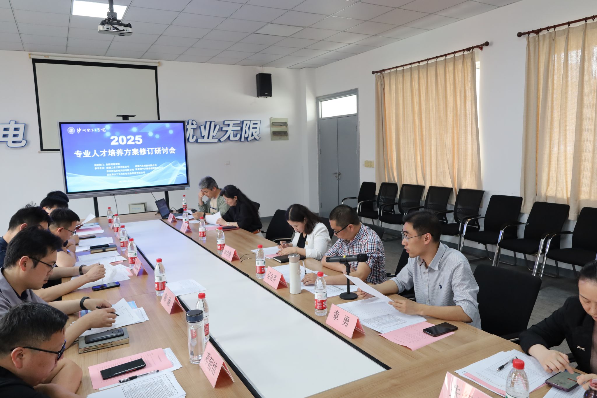 会议重点围绕课程设置、实践教学、校企共建等内容展开。智能制造学院专业负责人阐述2025级人才培养方案修订思路。企业专家结合行业发展趋势与岗位需求,提出了优化课程体系、强化技能实训、深化项目化教学等针对性建议意见。校企双向互动,对接地方产业需求,促进人才培养方案与“产教融合、共育人才”培养模式完善。