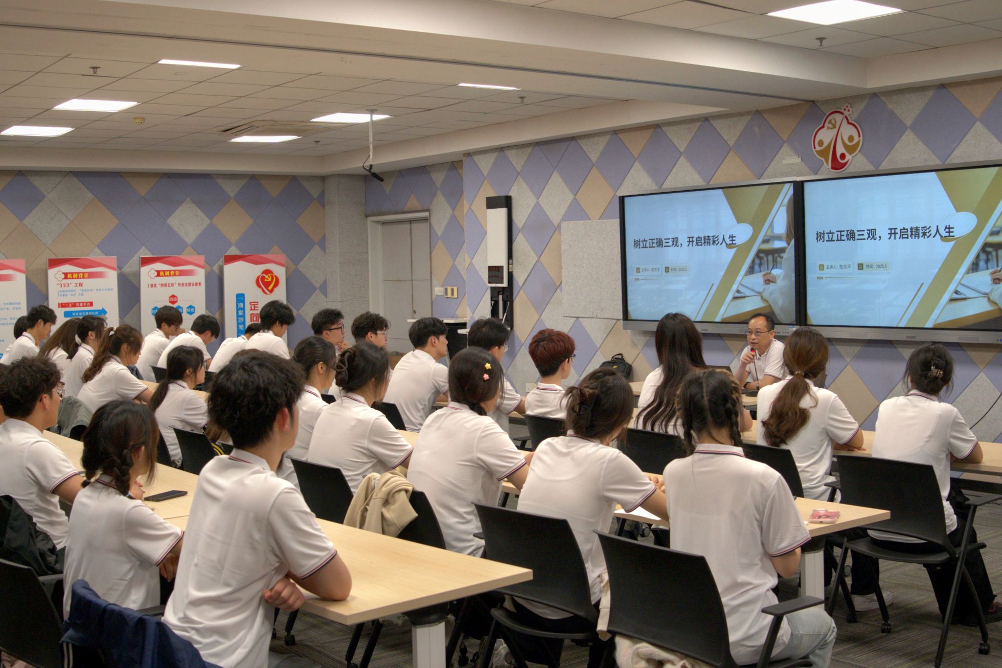 机关党总支书记陈东平上第一课《树立正确三观,开启精彩人生》,从世界观、人生观、价值观三个方面引导学生把握人生航向。