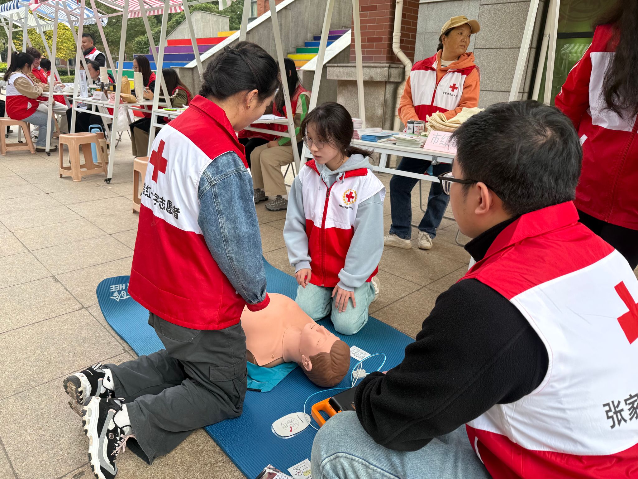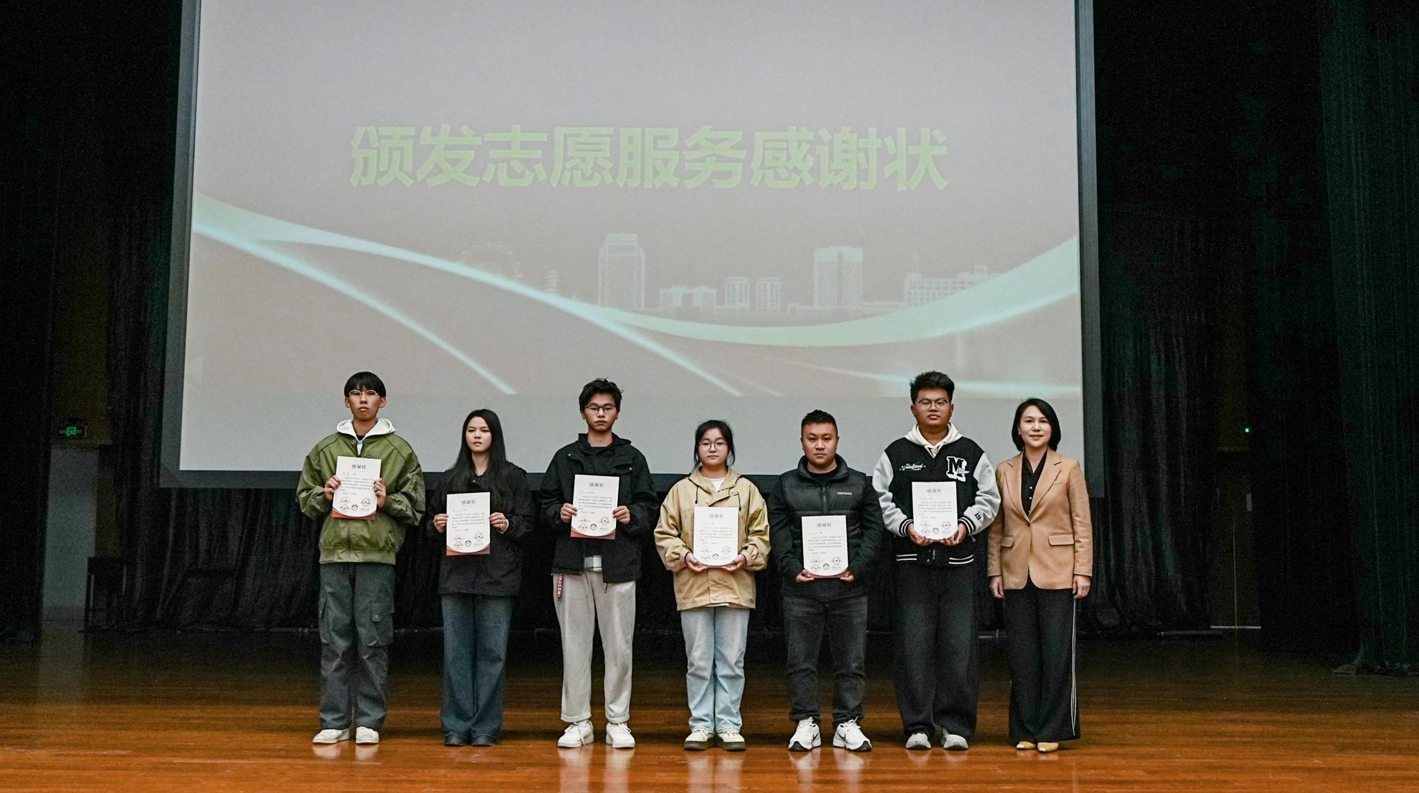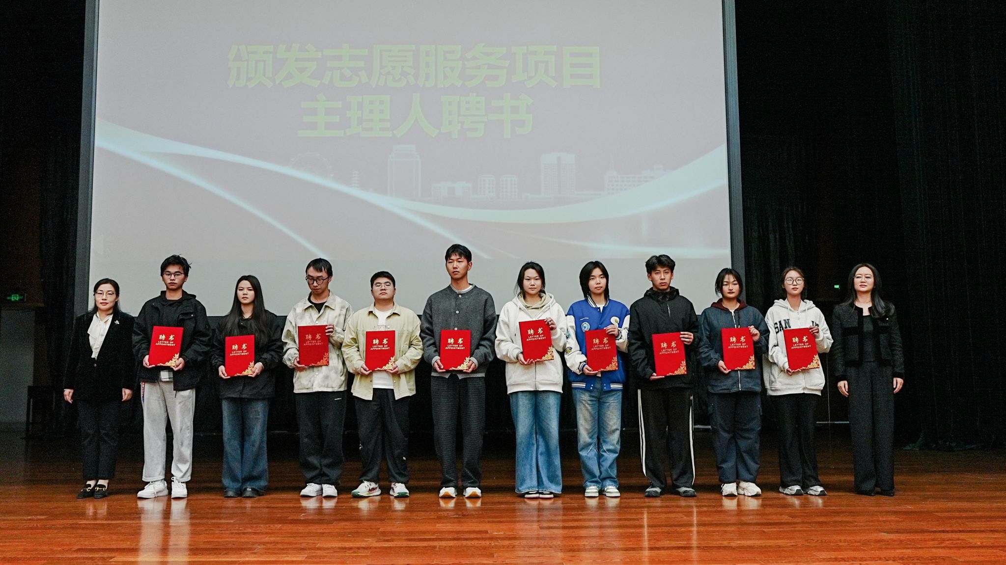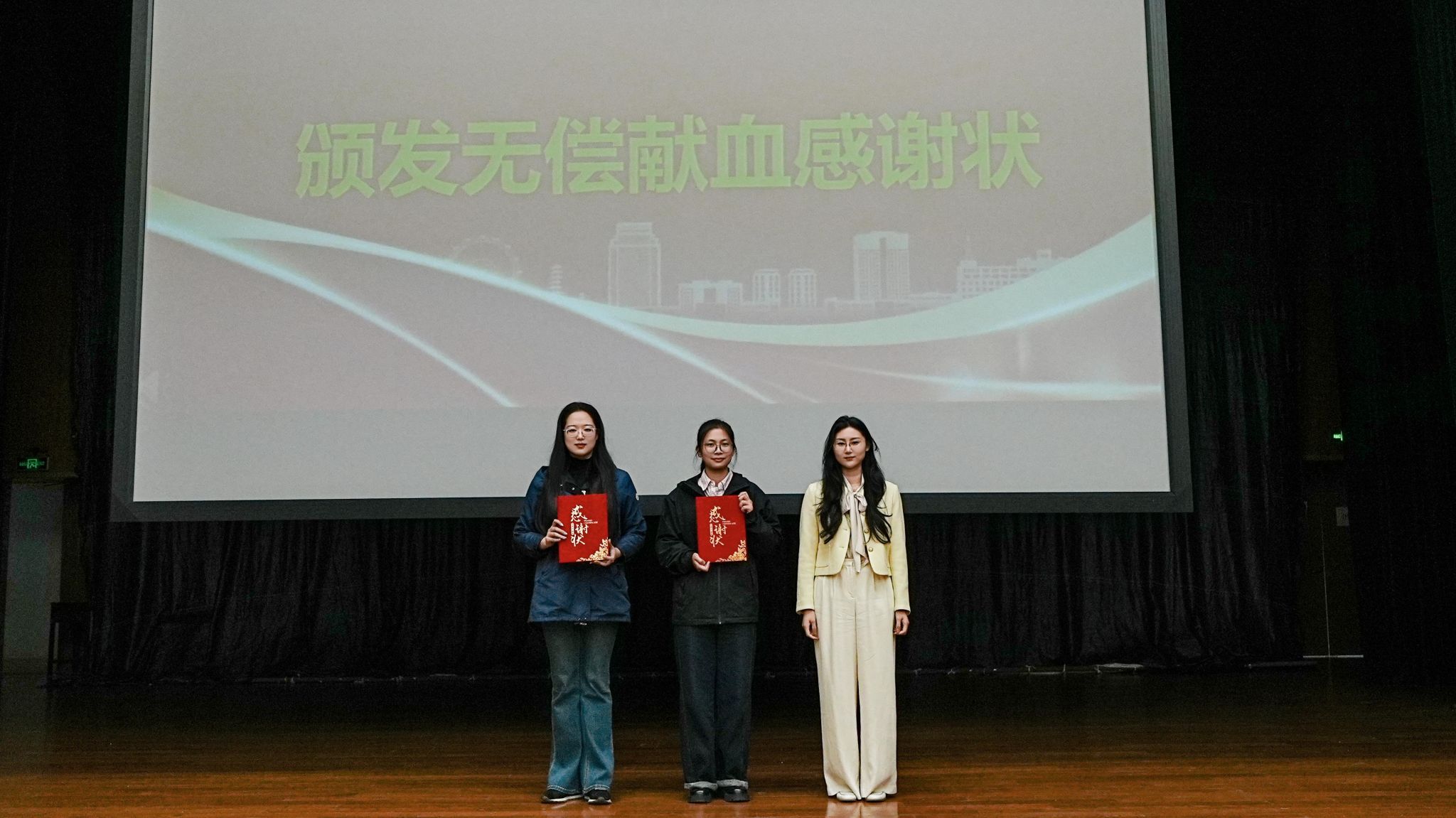 市卫健委负责人致辞;相关负责人为上一年度在无偿献血工作中表现突出的志愿者代表和集体颁发感谢状,并聘任新一届“热血青春 健康助力”红十字志愿服务项目主理人。我校团委代表就高校卫生健康和红十字工作进行经验交流,主理人代表宣读倡议书,号召广大青年积极投身无偿献血志愿服务。现场还设置了健康宣讲与答疑互动环节,并同步开展健康市集活动,气氛热烈。