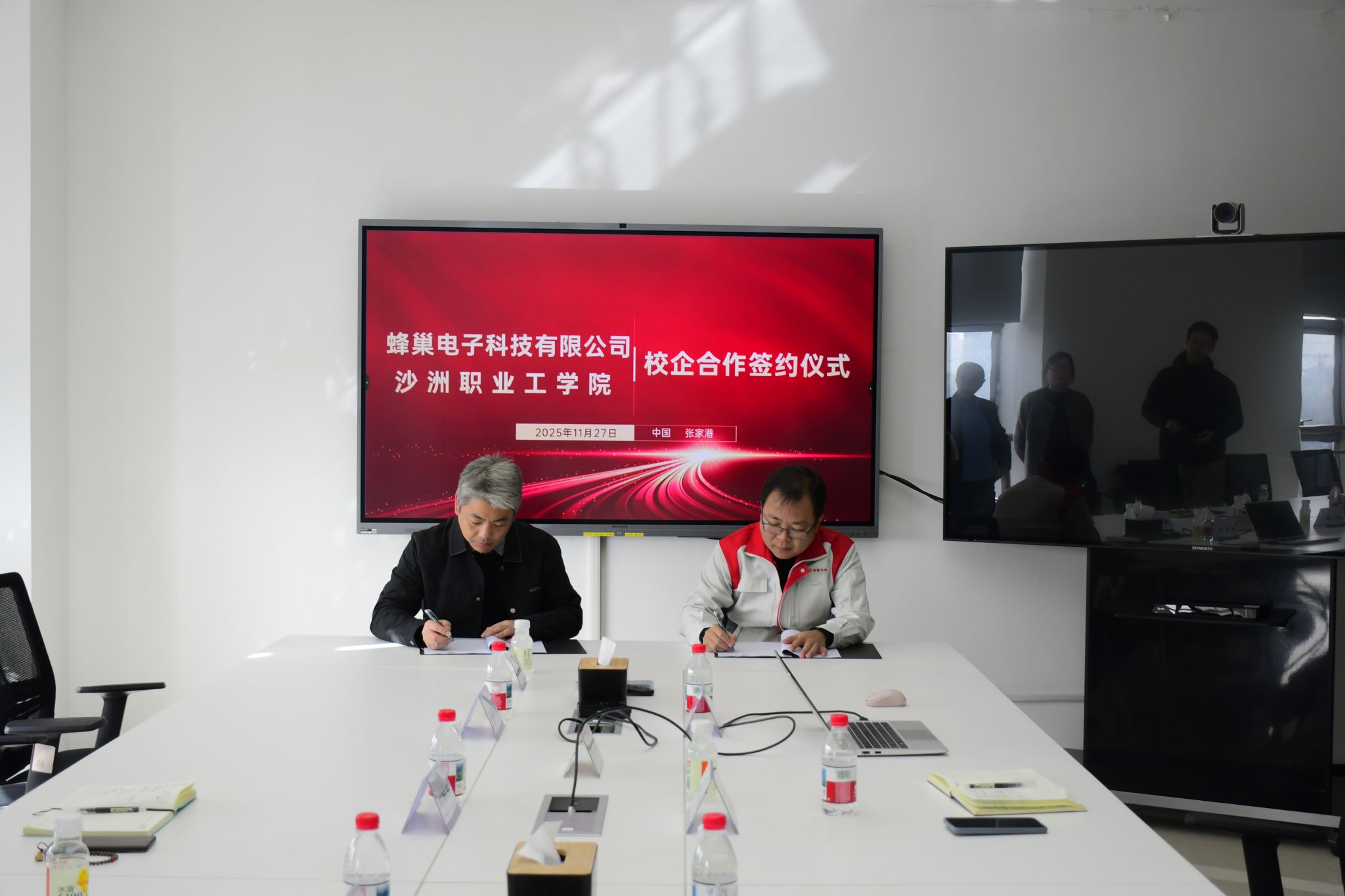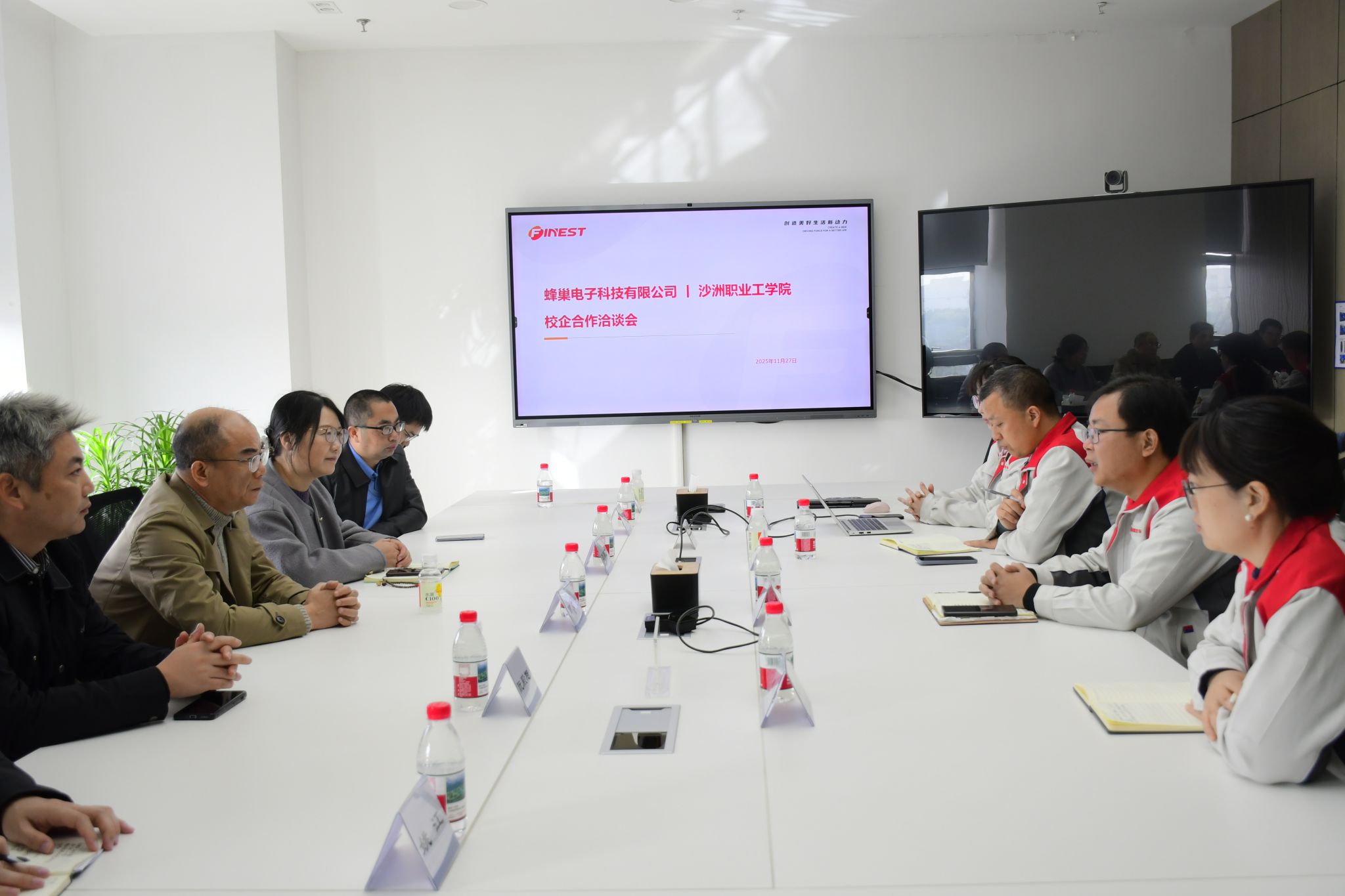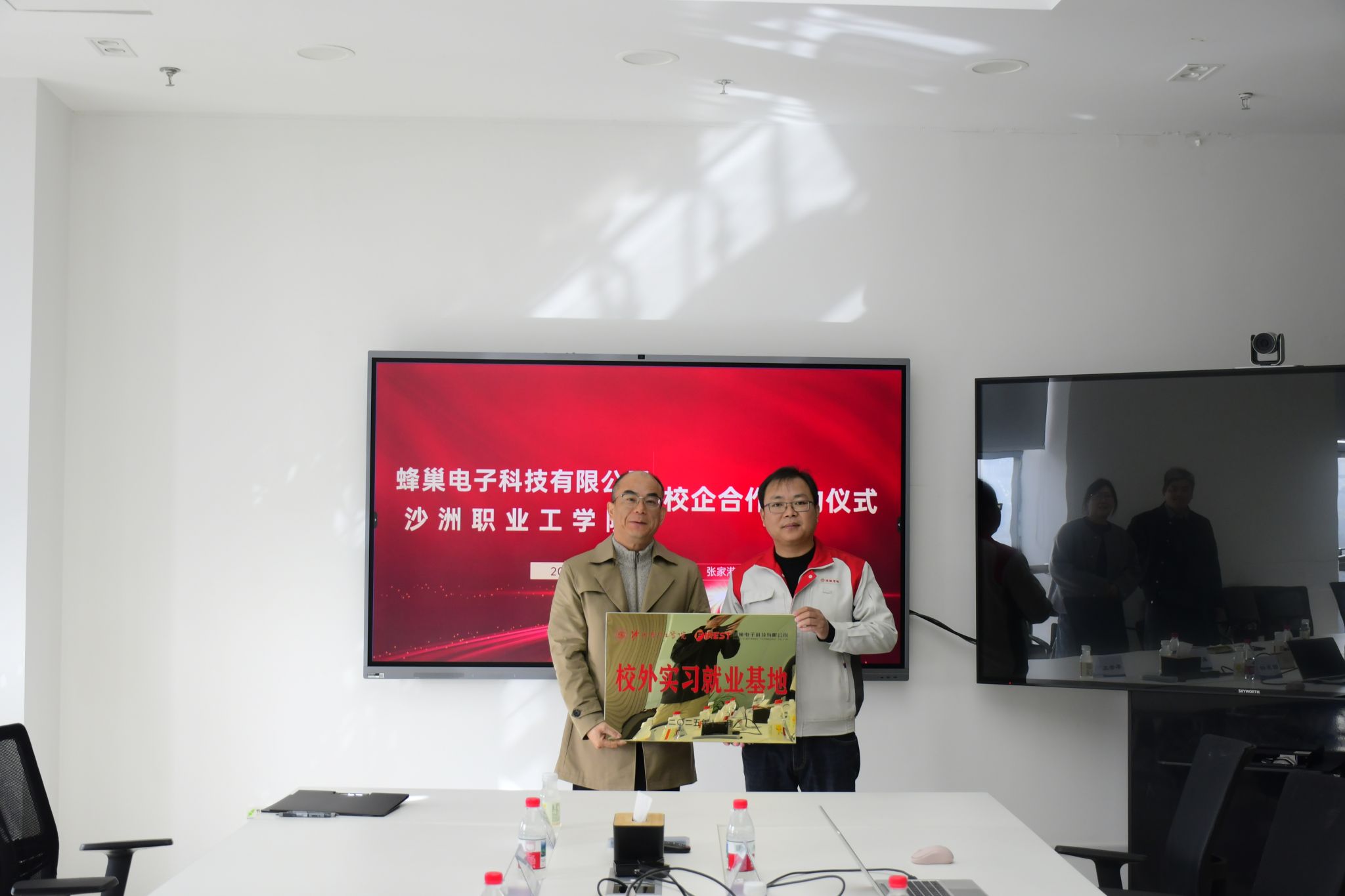 11月27日,“沙工-蜂巢”校企合作签约仪式在蜂巢电子科技有限公司举行。校企双方就人才培养、实习就业基地建设、科研技改以及社会化培训项目等进行交流沟通,校党委委员、副院长曹鹰飞,蜂巢电子科技有限公司总经理白克宾共同为“沙工-蜂巢”校外实习就业基地揭牌。智能制造学院党政负责人和教师代表参加了签约和揭牌仪式,与会人员参观了蜂巢电子科技有限公司生产车间和实验场地。