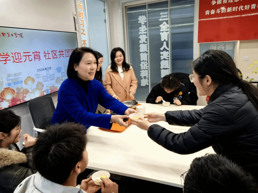 现场,同学们踊跃参与猜灯谜,感受传统民俗魅力。陈海英为大家盛上热乎乎的汤圆,师生围坐一起品味团圆的滋味,围绕校园学习、生活等话题亲切交流,共话成长。学校在各个公寓楼大厅为学生提供免费元宵,送上祝福,学生们感受到了沙工大家庭的温暖与关怀。