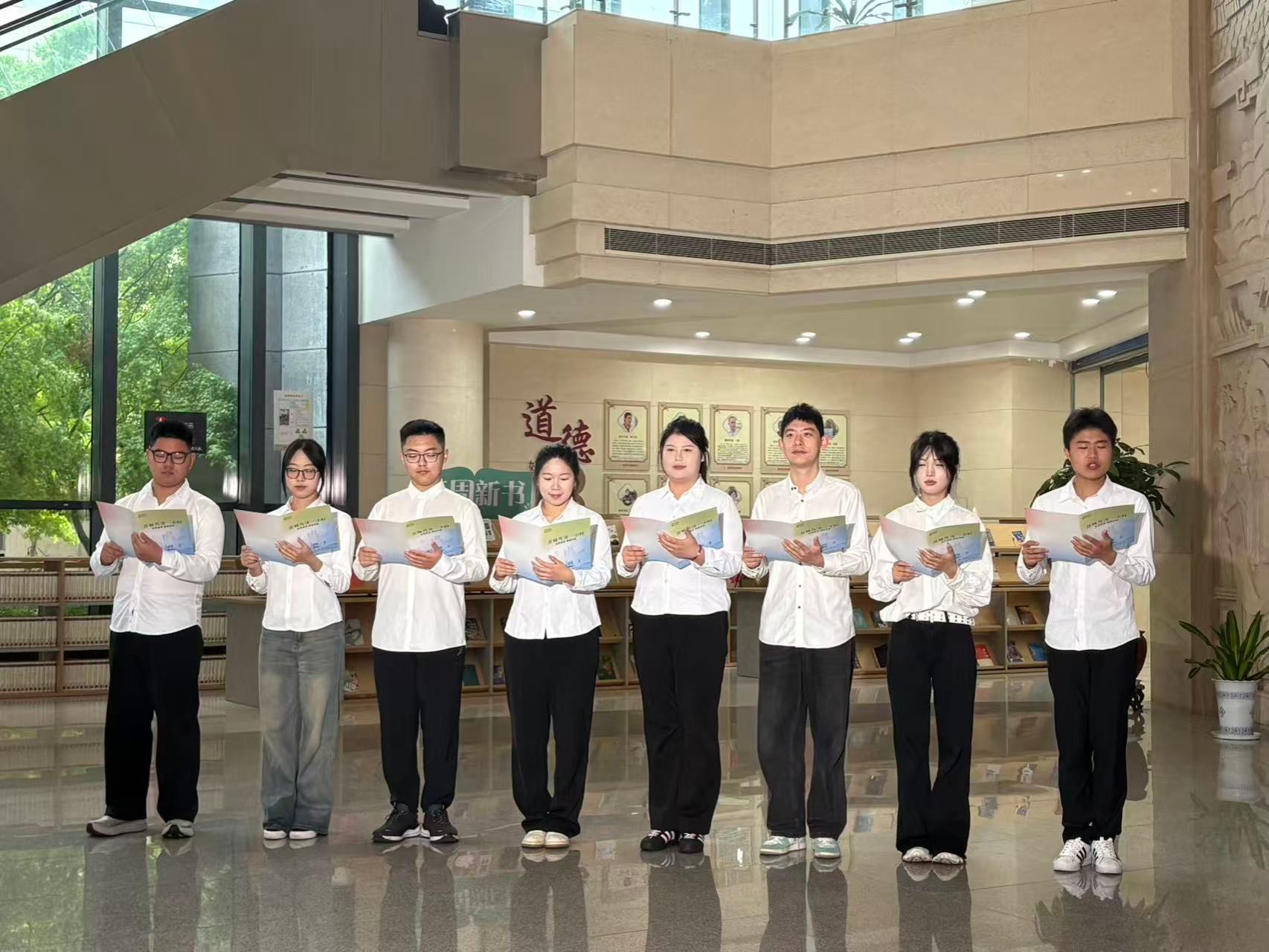 我校学生以饱满的精神状态,深情诵读了经典篇章《梦想照亮中国》,朗朗书声回荡在图书馆大厅,不仅展现了青年学子昂扬向上的精神风貌,更传递了对阅读的热爱与对文化的敬意。