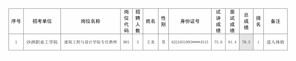 沙洲职业工学院公开招聘博士研究生(第一批)拟录用人员公示