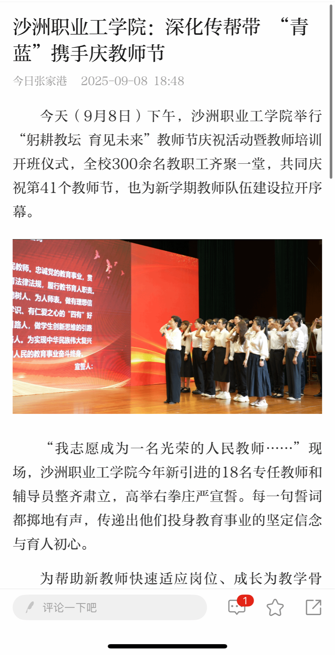【今日张家港】沙洲职业工学院:深化传帮带 “青蓝”携手庆教师节