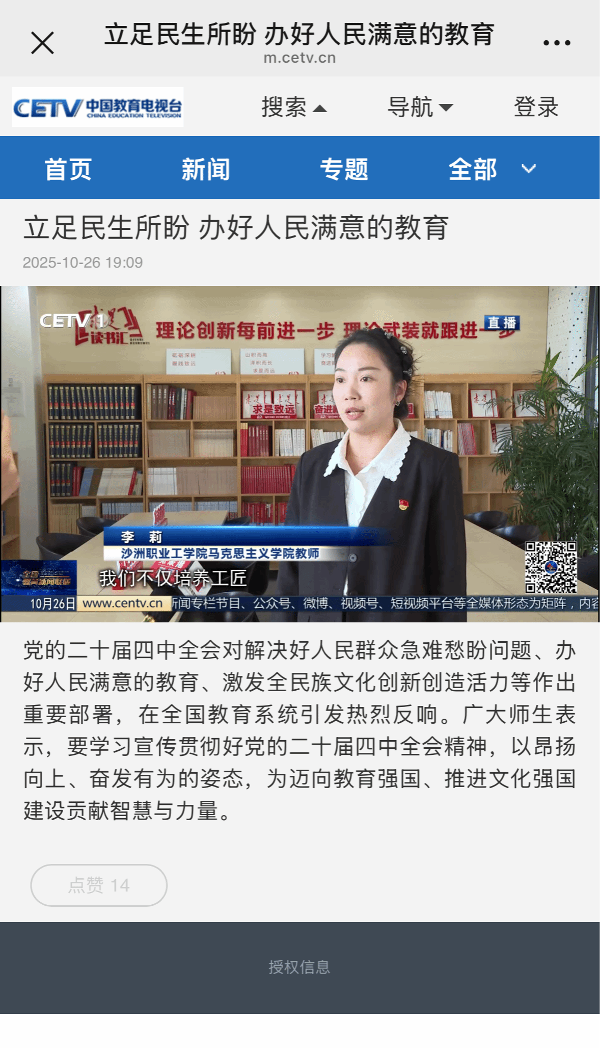【中国教育电视台】立足民生所盼 办好人民满意的教育
