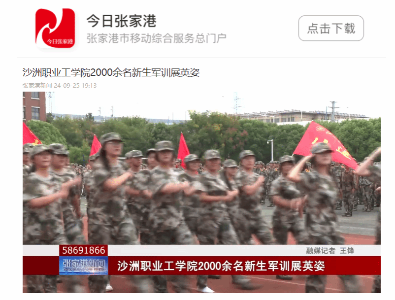 【今日张家港】沙洲职业工学院2000余名新生军训展英姿