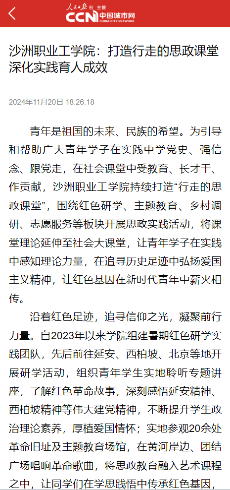 【中国城市网】沙洲职业工学院:打造行走的思政课堂 深化实践育人成效