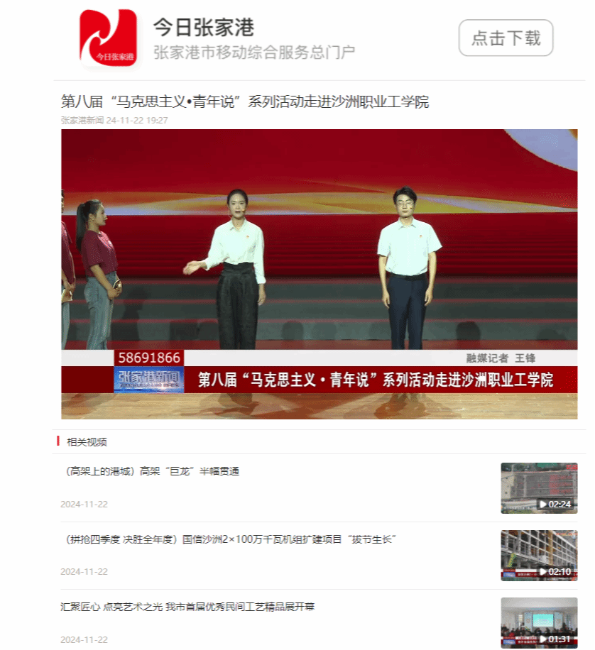【今日张家港】第八届“马克思主义•青年说”系列活动走进沙洲职业工学院