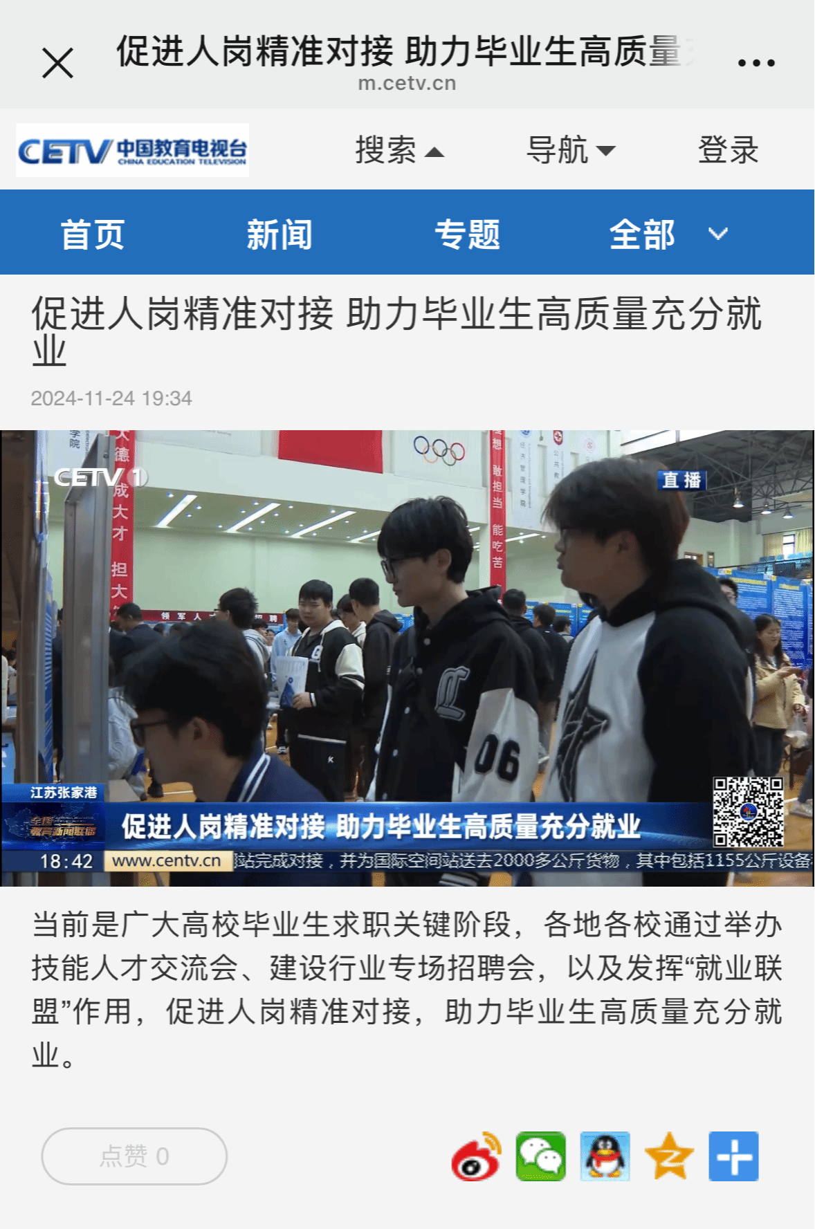 【中国教育电视台】促进人岗精准对接 助力毕业生高质量充分就业