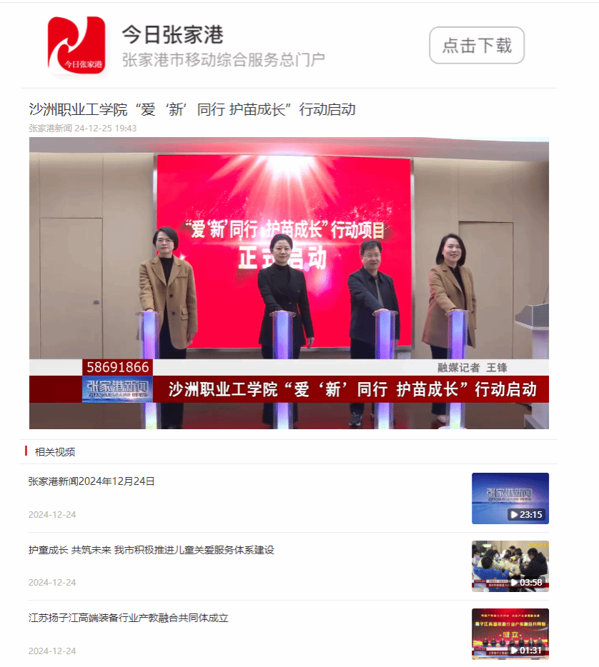 【今日张家港】沙洲职业工学院“爱‘新’同行 护苗成长”行动启动