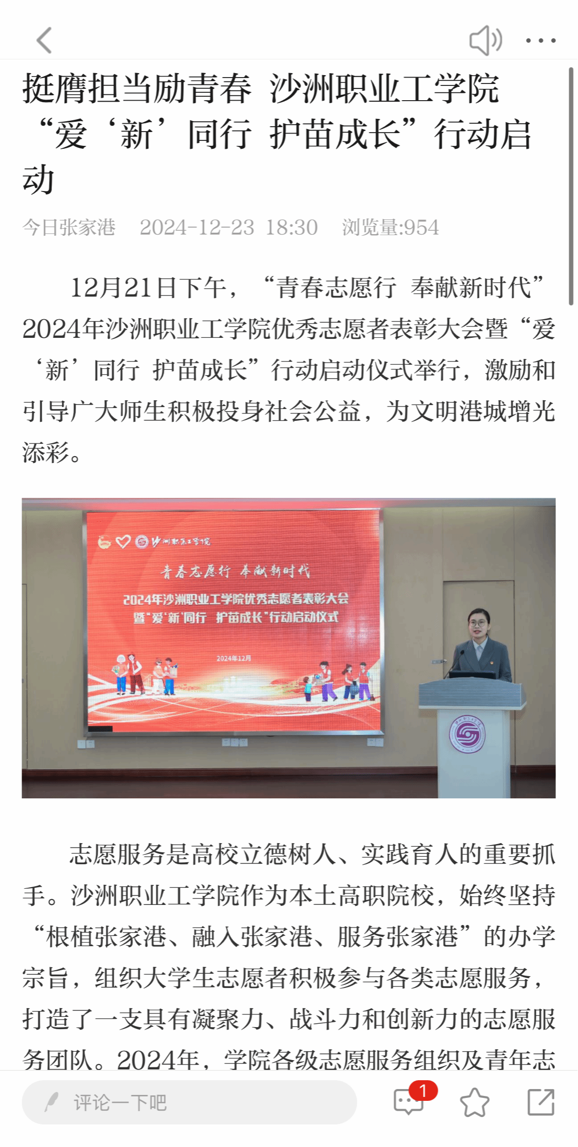 【今日张家港】挺膺担当励青春 沙洲职业工学院“爱‘新’同行 护苗成长”行动启动