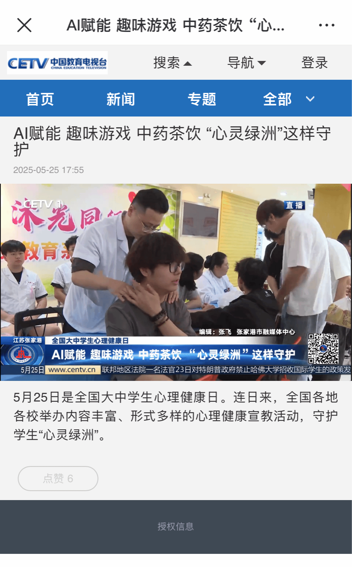 【中国教育电视台】AI赋能 趣味游戏 中药茶饮 “心灵绿洲”这样守护