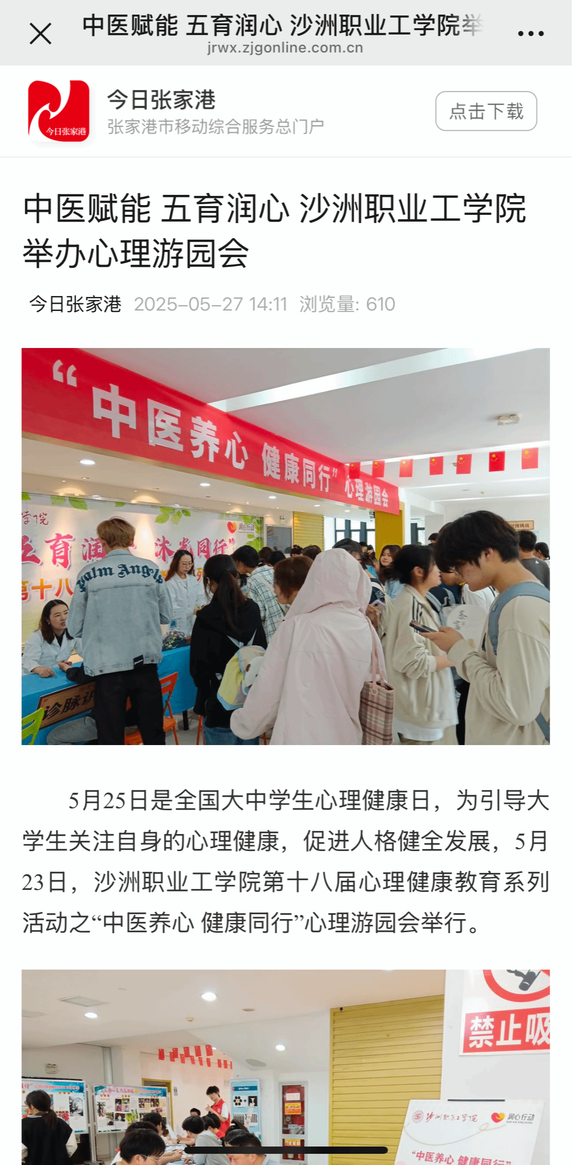 【今日张家港】中医赋能 五育润心 沙洲职业工学院举办心理游园会